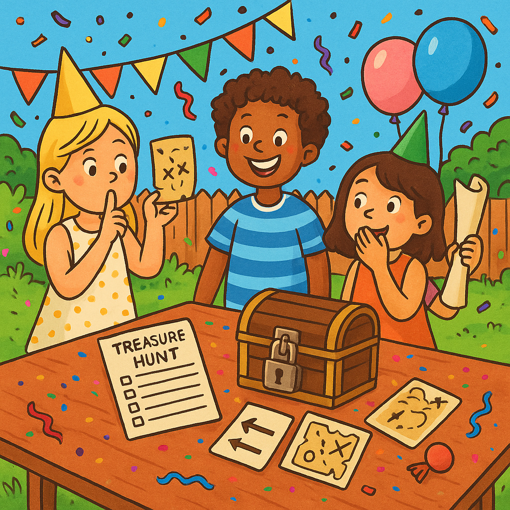 Stel je voor: het is zaterdagmiddag, de woonkamer is gevuld met vrolijk geklets en een tikkeltje spanning. Acht kinderen zitten op het puntje van hun stoel met feesthoedjes scheef op hun hoofd. Ze zijn geen gewone gasten meer… vandaag zijn ze ontdekkingsreizigers. Hun missie? Een schat vinden die ergens in de buurt verborgen ligt.